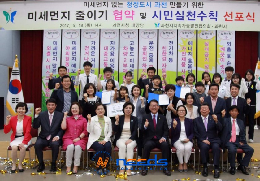 세부내용 : 2017년5월18일 과천시청에서 "미세먼지 줄이기 협약 체결 및 미세먼지 대응 시민실천수칙 선포식"