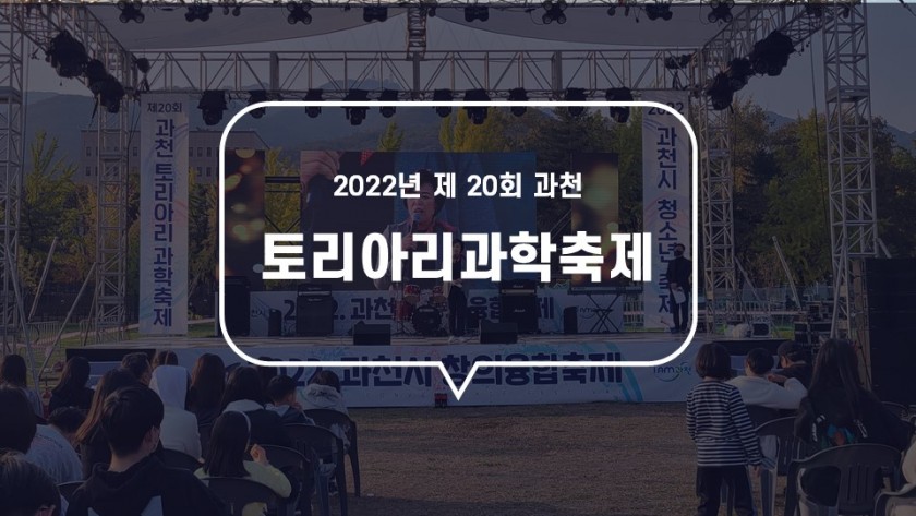 2022년 제20회 과천 토리아리 과학축제 페이지 정보 작성자 관리자 작성일23-03-06 13:42 조회3,257회 본문 행사명 : 2022년 제20회 과천 토리아리과학축제일 시 : 2022년 10월 22일장 소 : 과천시민광장주 관 : 과천 정보과학도서관주 최 : 과천시업 무 : 축제 기획 및 연출, 운영 / 시스템 설치 및 운영 / 과학프로그램 기획 및 운영 이전글 다음글 목록